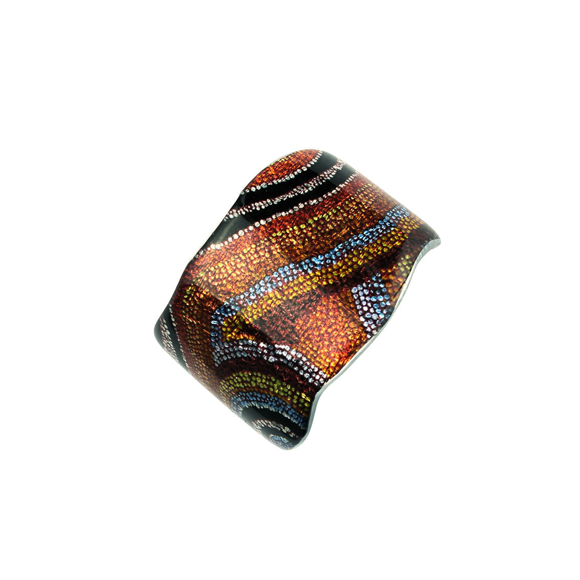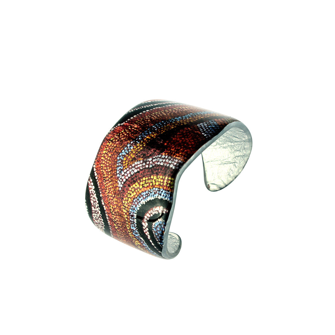 This item is a joint work with Warlukurlangu Artists of Yuendumu Corporation, 3,5 hours of Alice Springs, NT. Add sophistication and elegance to any outfit with this meaningful unique piece of jewellery. Designed and handmade in Australia, it will be sent in an elegant gift box with an information leaflet (story associated with the artwork featured, name of the artist who will receive 10% royalties, instructions to make to size when possible).