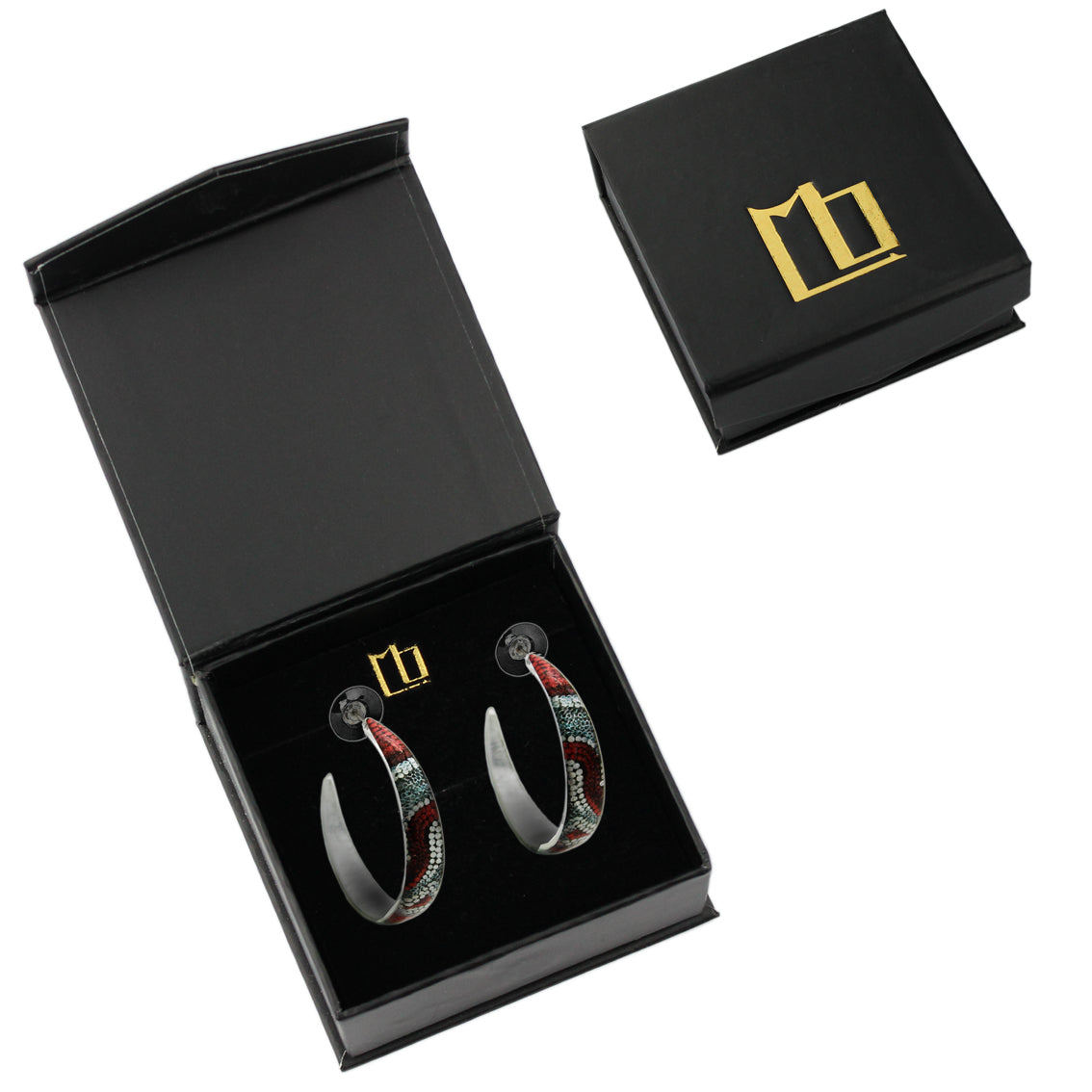 FABRIANNE RED AND SILVER STATEMENT LOOP EARRINGS - SD332