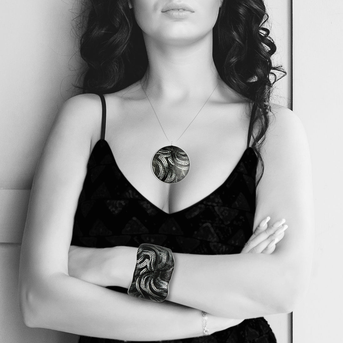 FABRIANNE SILVER AND BLACK ADJUSTABLE STATEMENT BRACELET - SD358